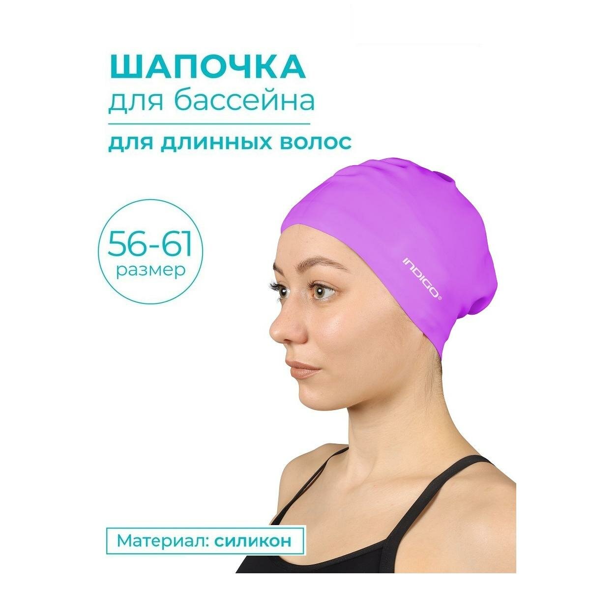Шапочка для плавания силиконовая длинные волосы INDIGO 804 SC Фиолетовый 600 ₽