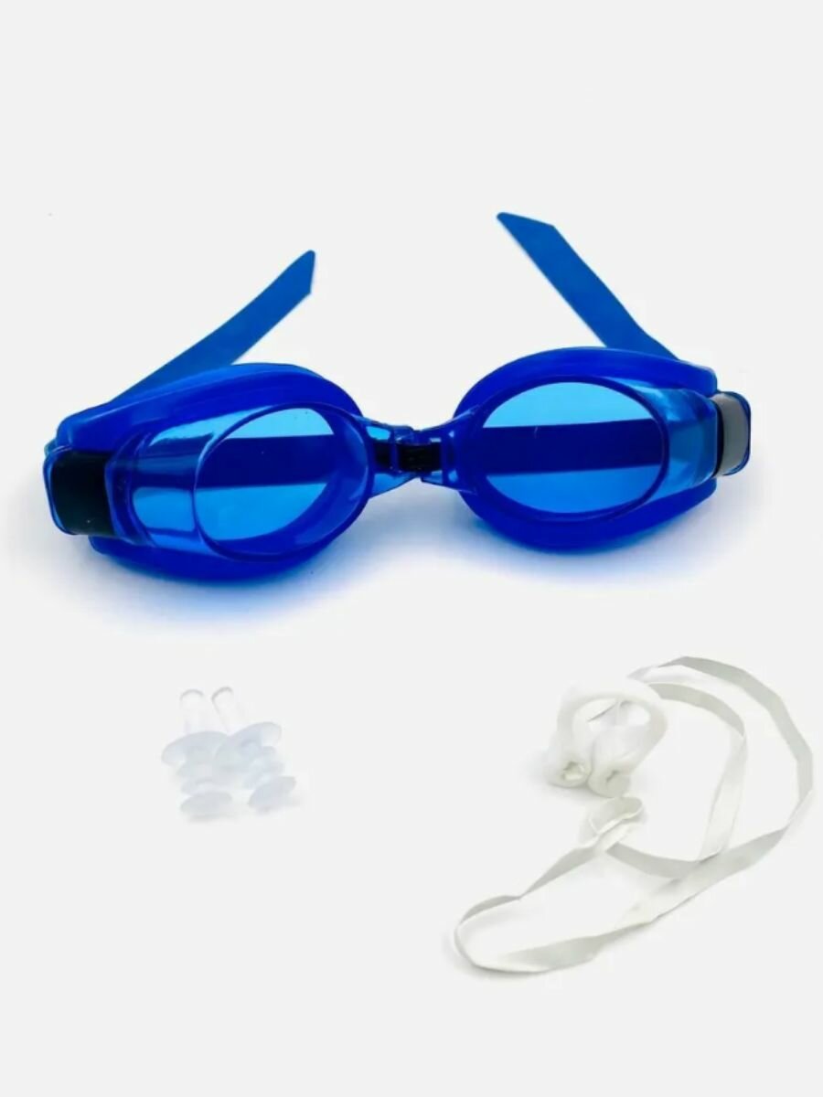 Очки для плавания с берушами и зажимом для носа, темно-синие информация:
