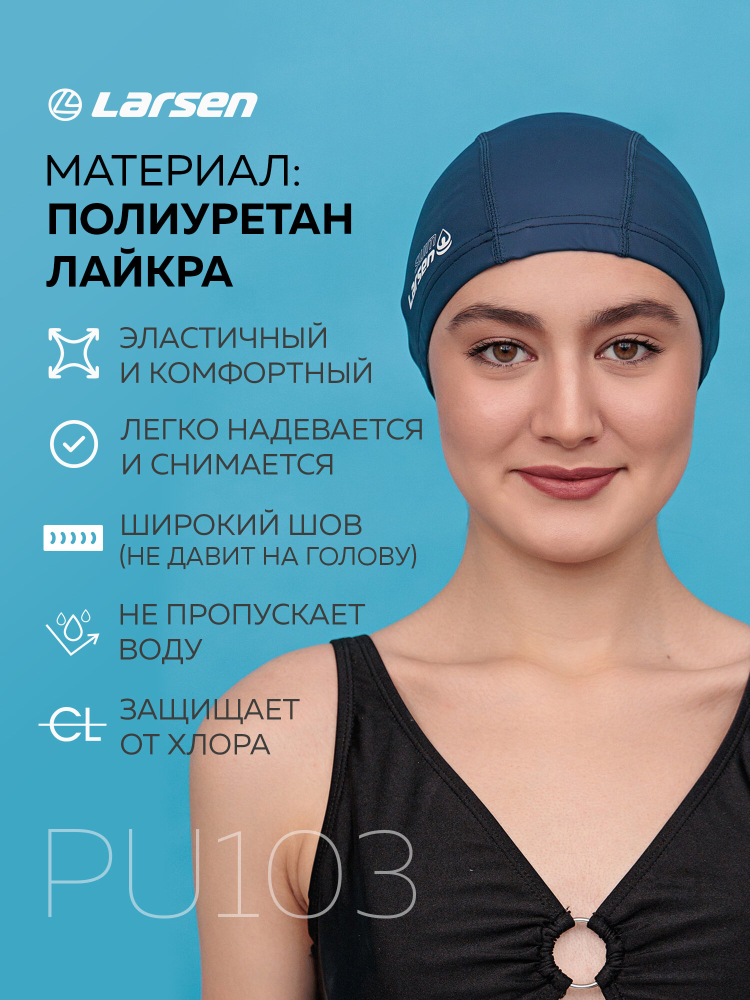 Отзывы на Шапочка плавательная для бассейна тканевая водонепроницаемая Larsen Swim PU100 синяя