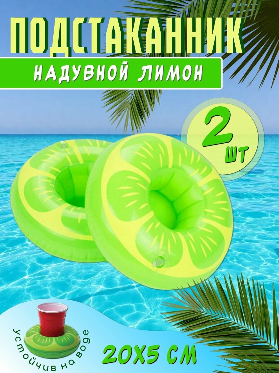 Надувные пляжные подстаканники "Сочный Лимон" 2 шт/ Плавающий подстаканник/ Аксессуары для пляжа информация: