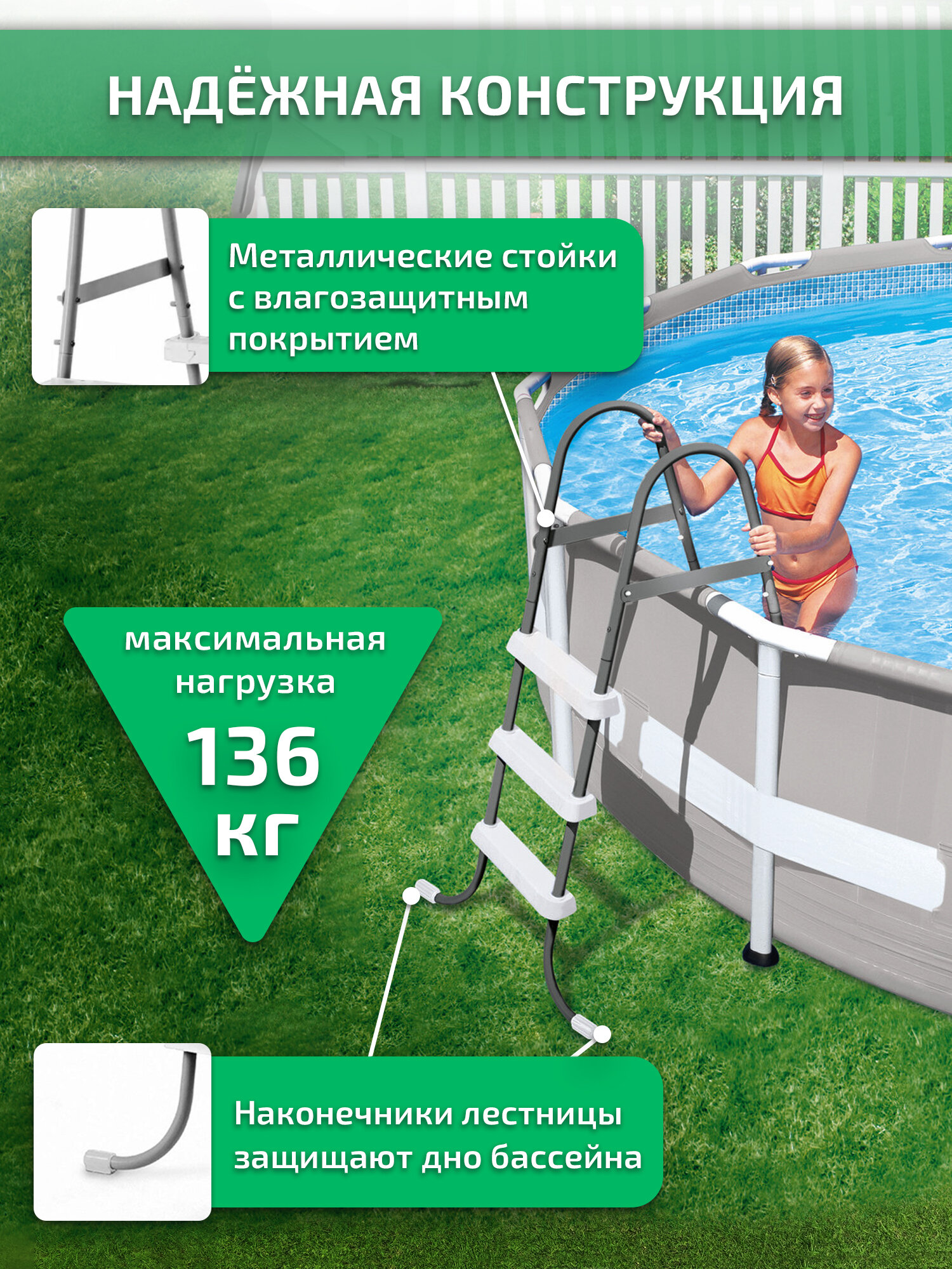 Лестница для бассейнов Intex до 107см, 3 ступеньки, без площадки 28065 информация: