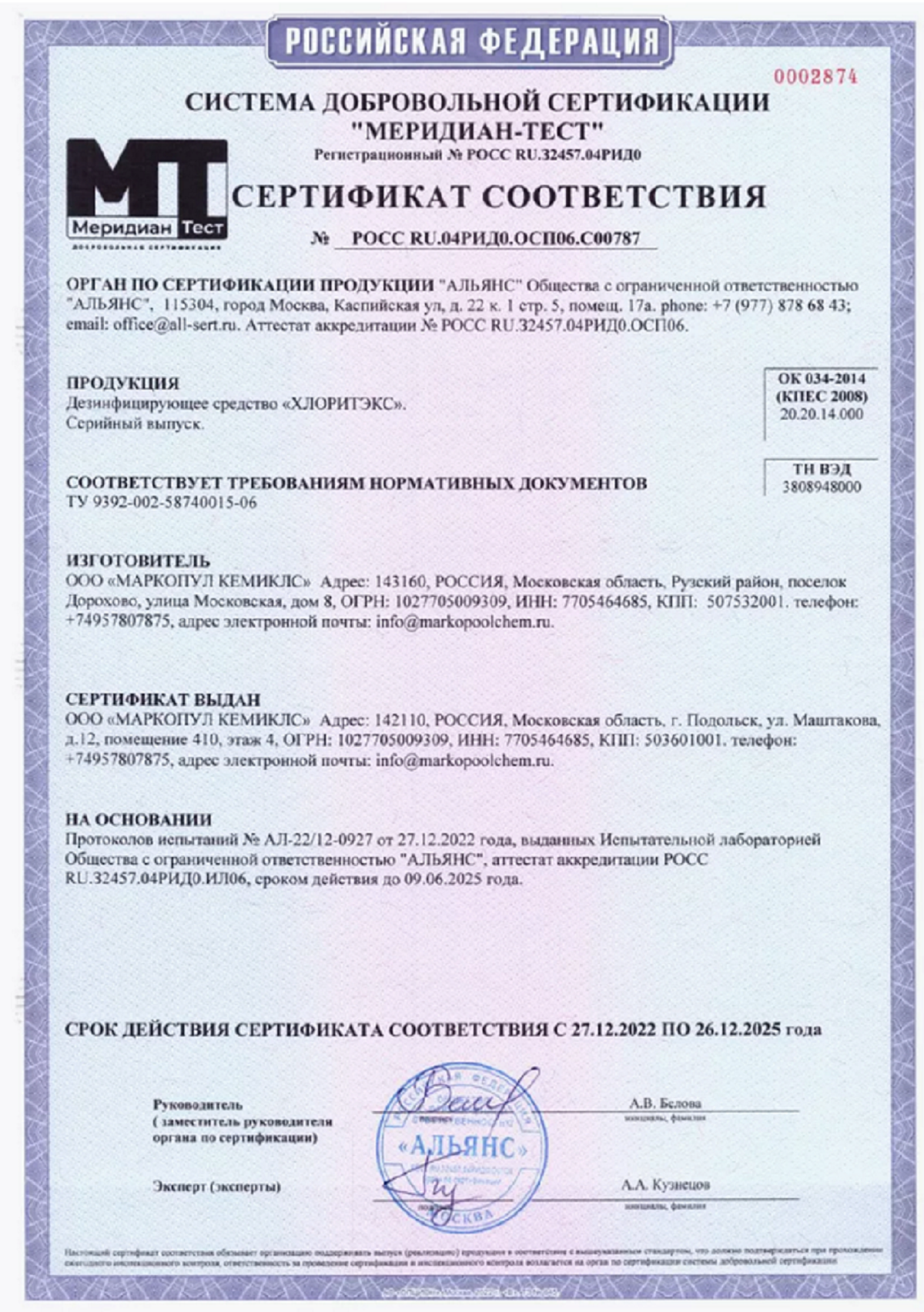 Хлоритэкс для бассейна 200г, гранула для дезинфекции и очистки воды информация: