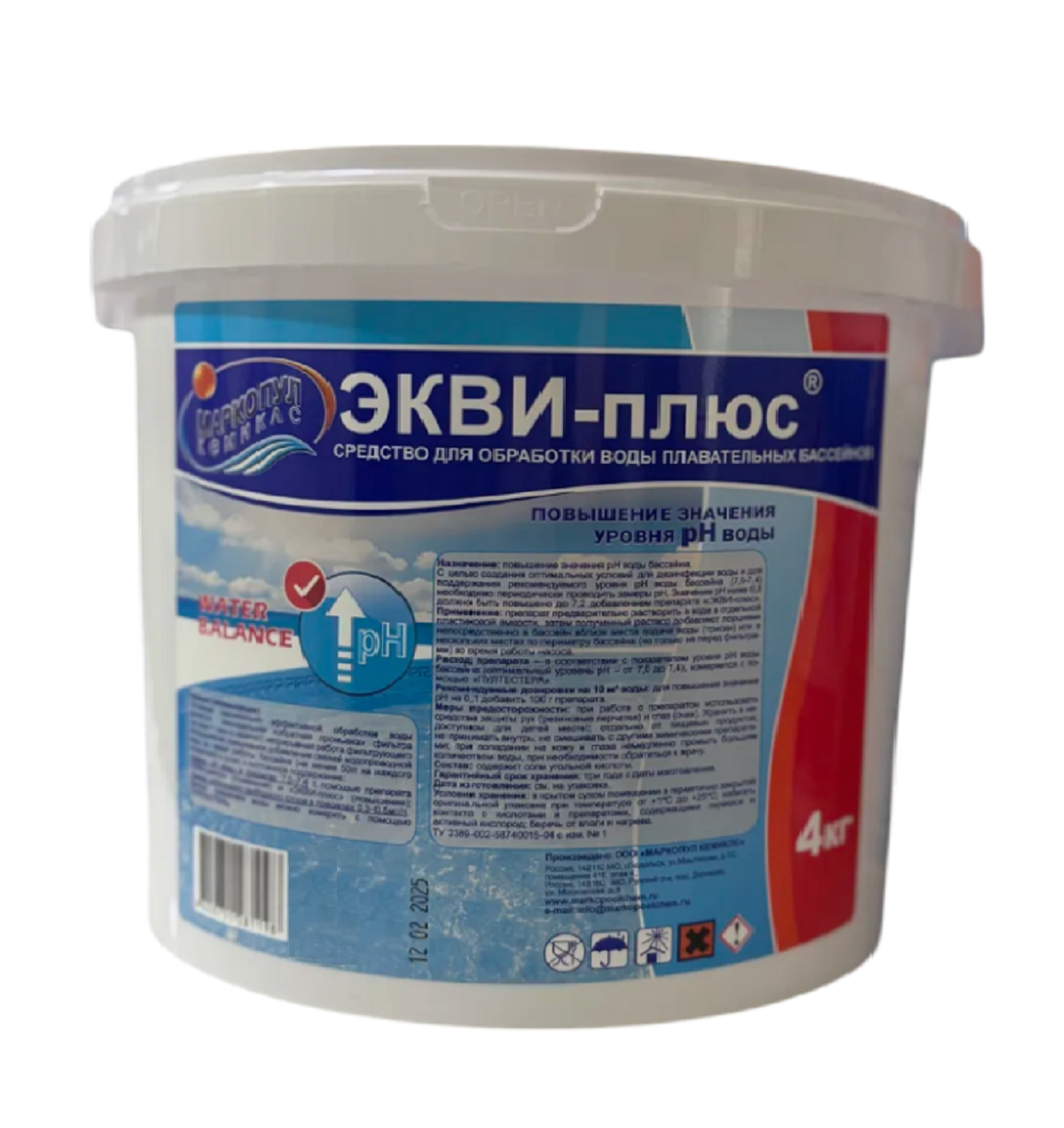 Экви плюс 4 кг, порошок для бассейна, повышение уровня pH воды информация: