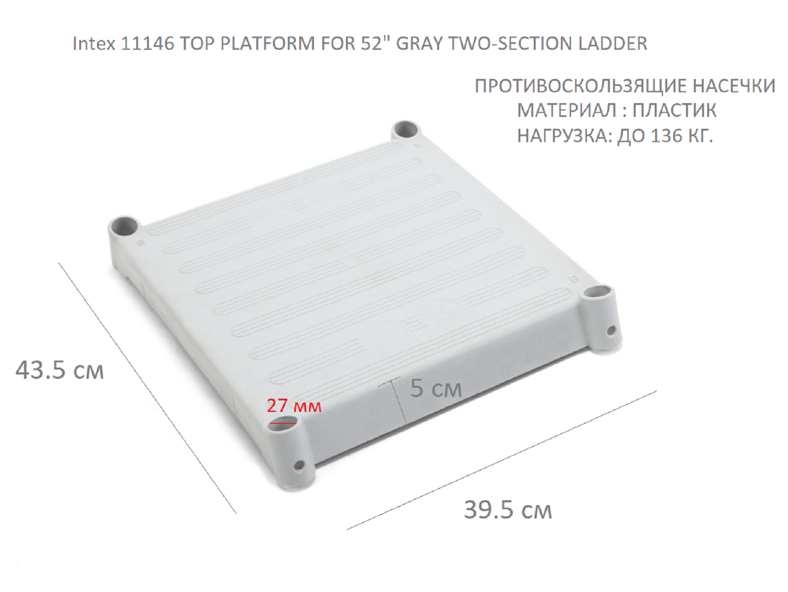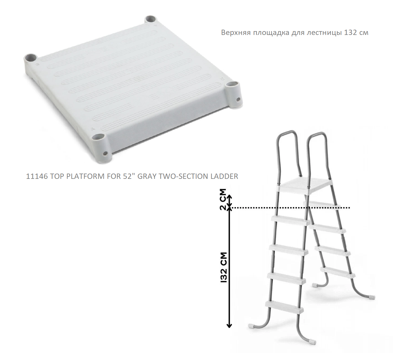Верхняя площадка для лестницы 132 см, PLATFORM FOR 52" GRAY TWO-SECTION LADDER INTEX 11146 информация: