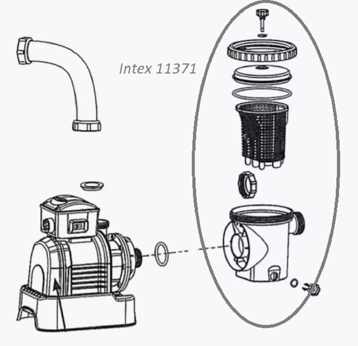 Предфильтр 11371, скиммер для песочного фильтр- насоса 14"& 16" SF & COMBO PRE-FILTER ASSEMBLY информация: