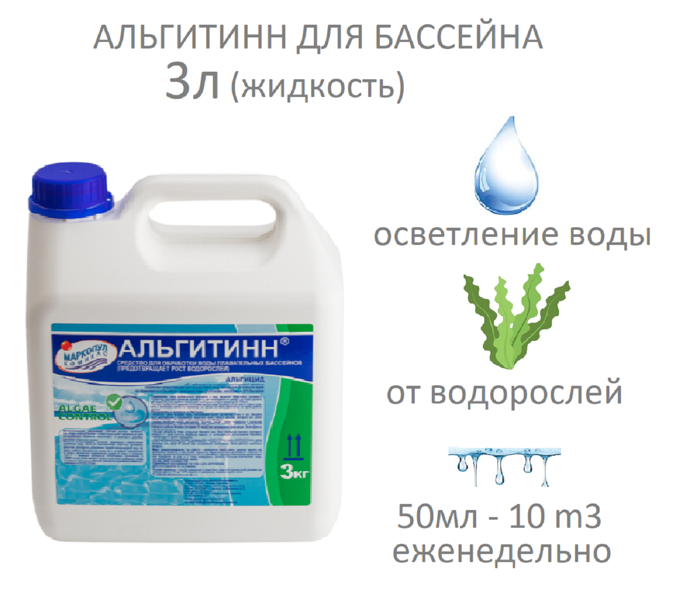 Альгитинн для бассейна 3л, очистка воды от водорослей, без хлора информация:
