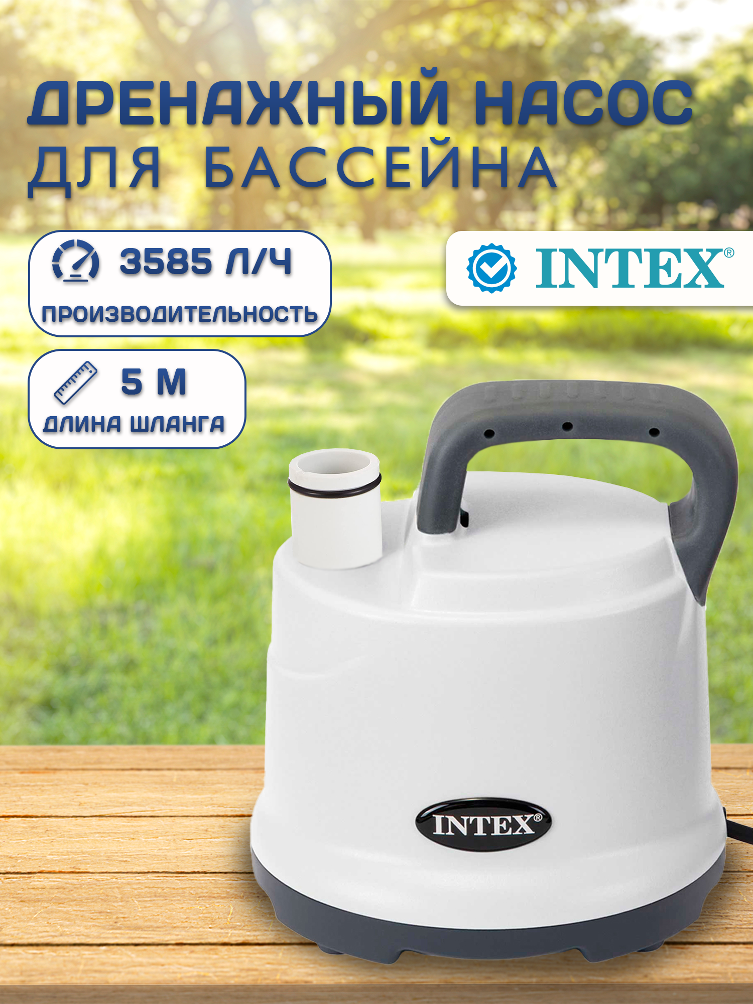 Дренажный насос Intex 3595 л/ч, шланг 5м 28606 информация: