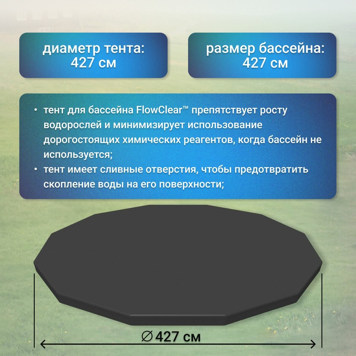 Тент для бассейна Bestway Steel Pro MAX/Power Steel, ПВХ, сливные отверстия, черный, 427см информация: