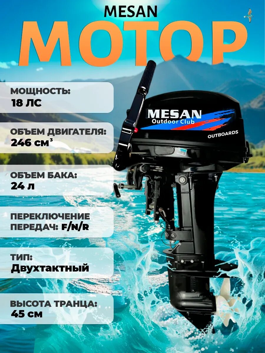 10 цен на Мотор лодочный MESAN 2-х тактный 9.9 л. с, 13.2 кВт, 246 см куб, черный