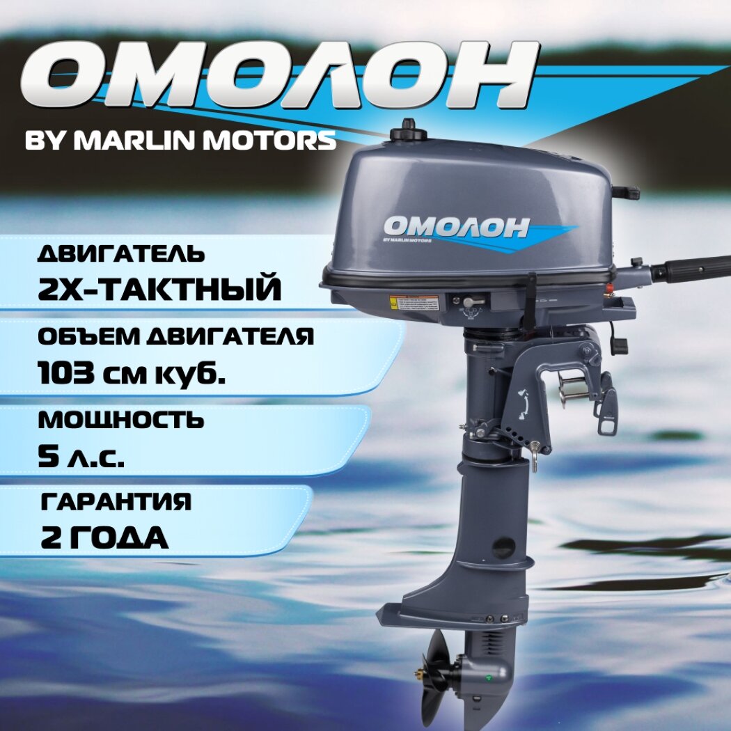 Лодочный мотор Омолон MP 5 AMHS, двухтактный, бензиновый, 5 л. с, серый информация: