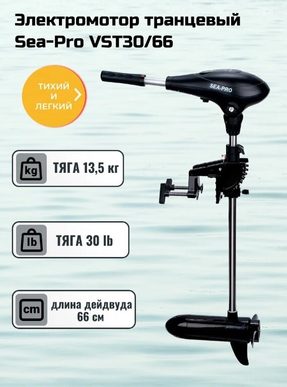 Электромотор транцевый Sea-Pro VST30/66, под аккумулчтор 12В, тяга 30Lb / 13.5кг, для морской и пресной воды информация: