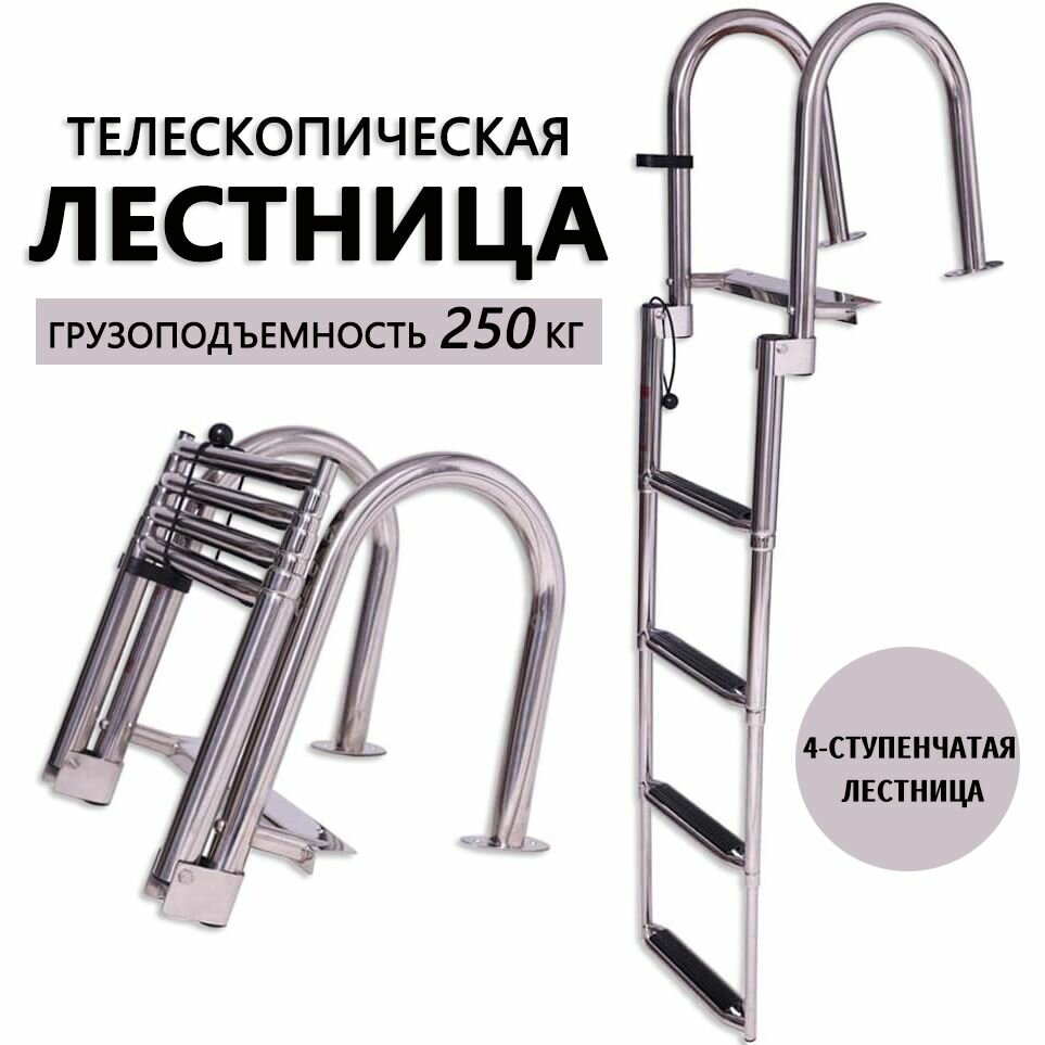 Трап телескопический складной 4 ступени, нержавеющая сталь / Лестница складная для лодки, катера, яхты информация: