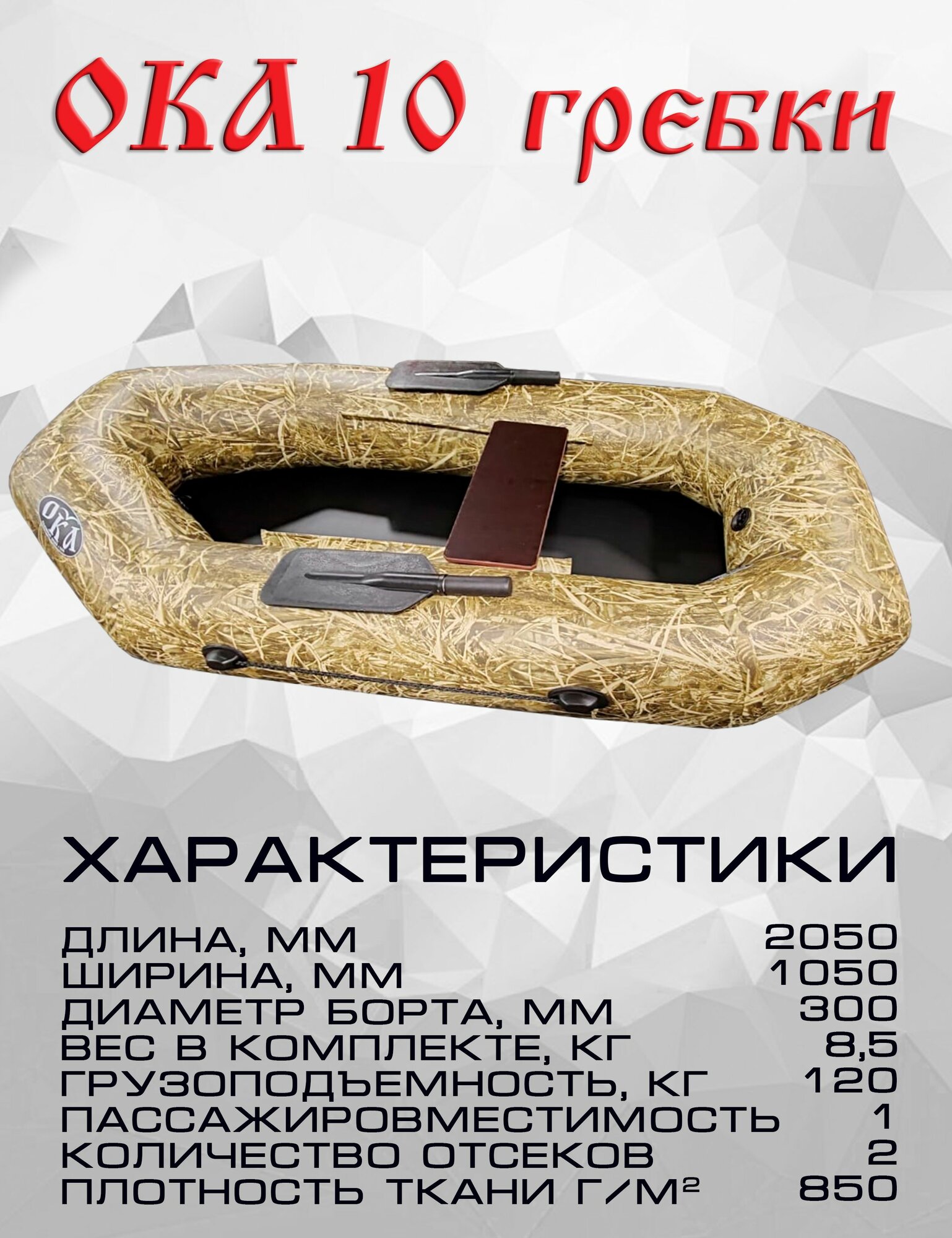 Надувная лодка Ока 10 гребки (205 см) гребная, цвет камыш, одноместная информация: