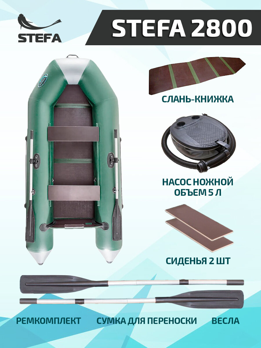 Лодка ПВХ Стефа 2800МС, надувная, армированный ПВХ, 2 места, встроенный транец информация: