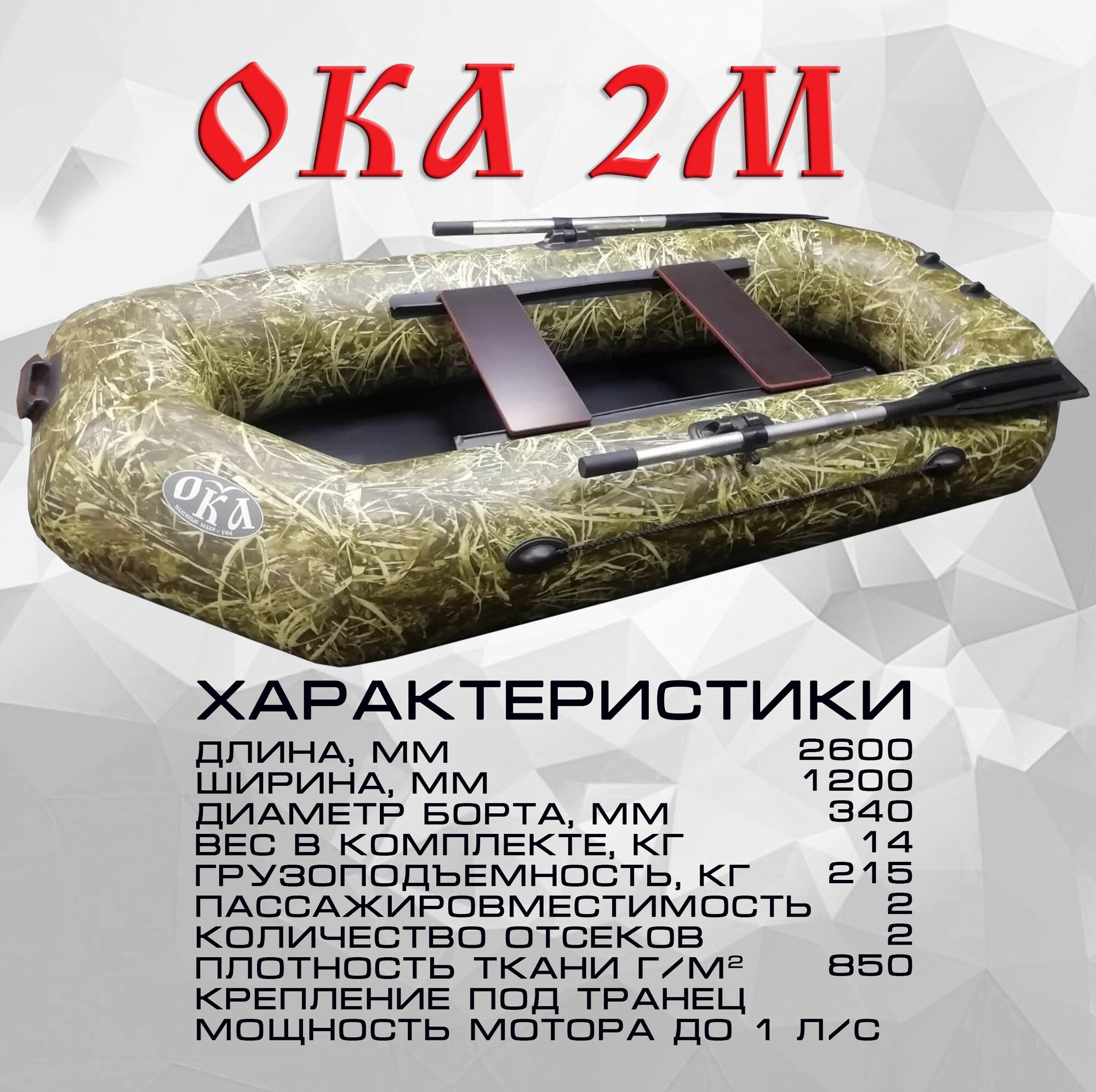 Надувная лодка пвх Ока 2м (260 см) гребная под мотор, цвет камыш, двухместная информация: