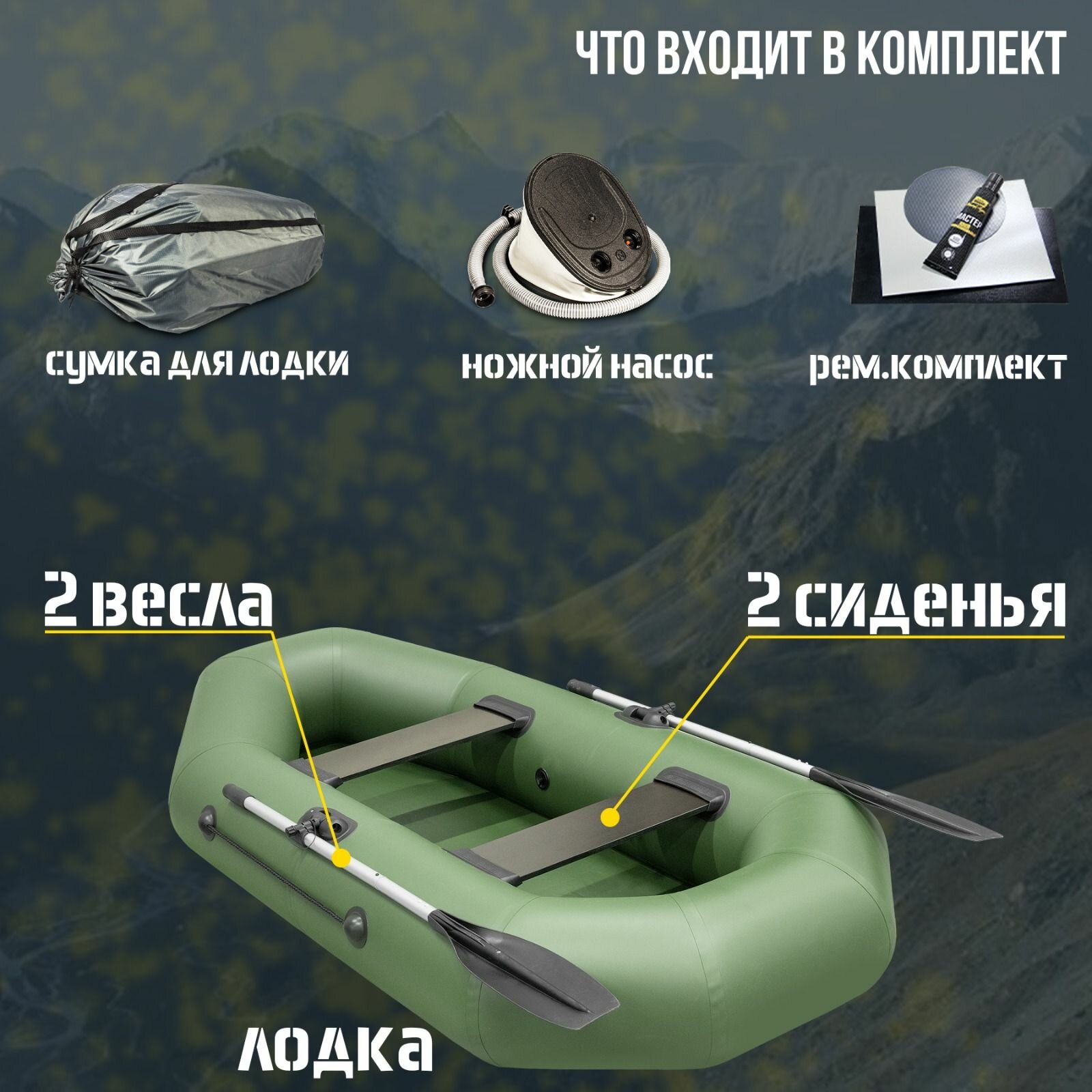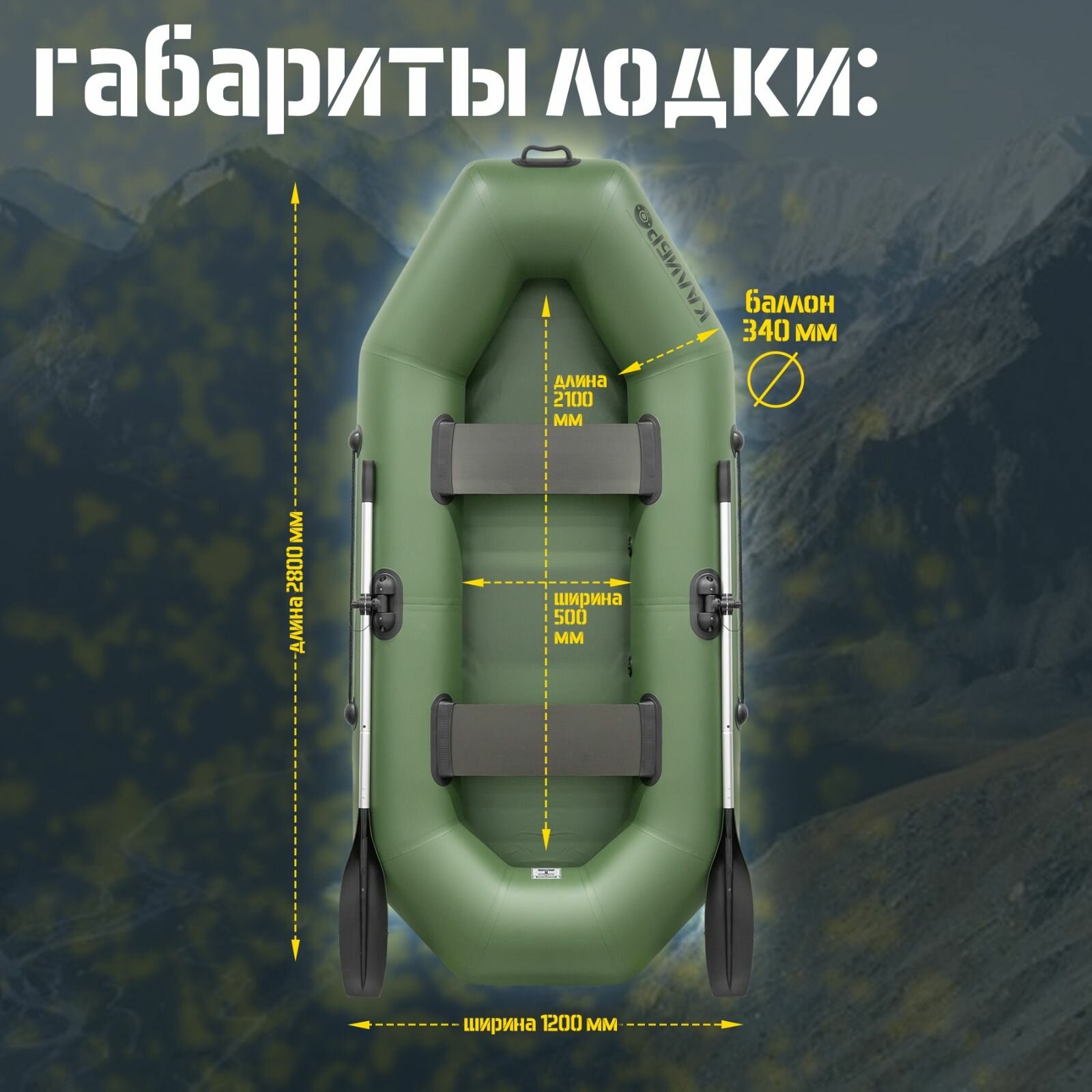 Лодка надувная ПВХ для рыбалки гребная двухместная калибро 280, зеленый информация: