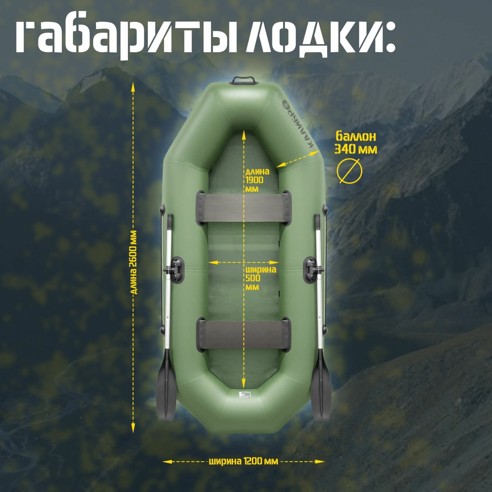 Лодка надувная ПВХ для рыбалки гребная двухместная калибро 260, зеленый информация: