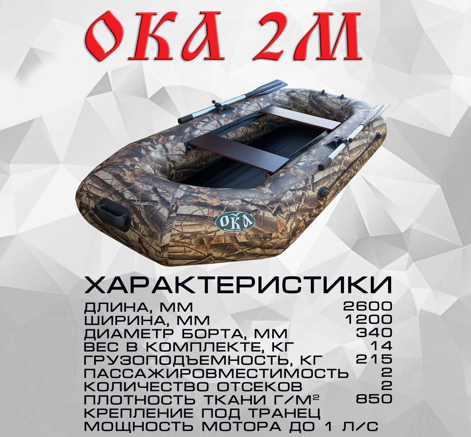 Надувная лодка пвх Ока 2м (260 см) гребная под мотор, цвет камуфляж лес, двухместная информация: