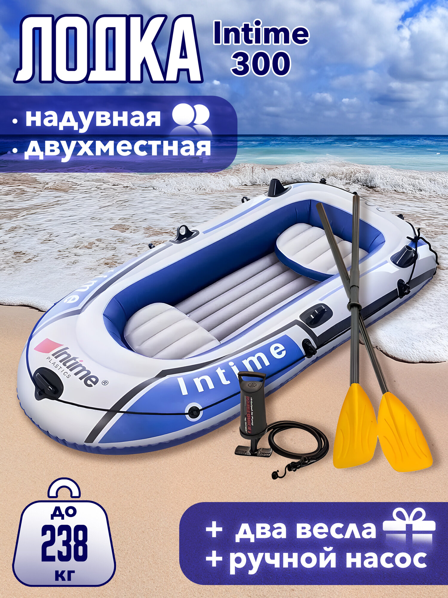 10 цен на Лодка BIRDSANDFISH, надувная, ПВХ, гребная, трехместная, белая, синяя