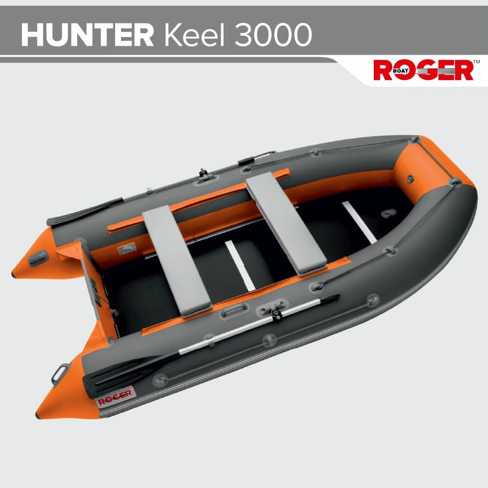 10 цен на Лодка надувная ПВХ под мотор ROGER Hunter Keel 3000, лодка роджер с жестким дном (графитовый-оранжевый комбинированный)