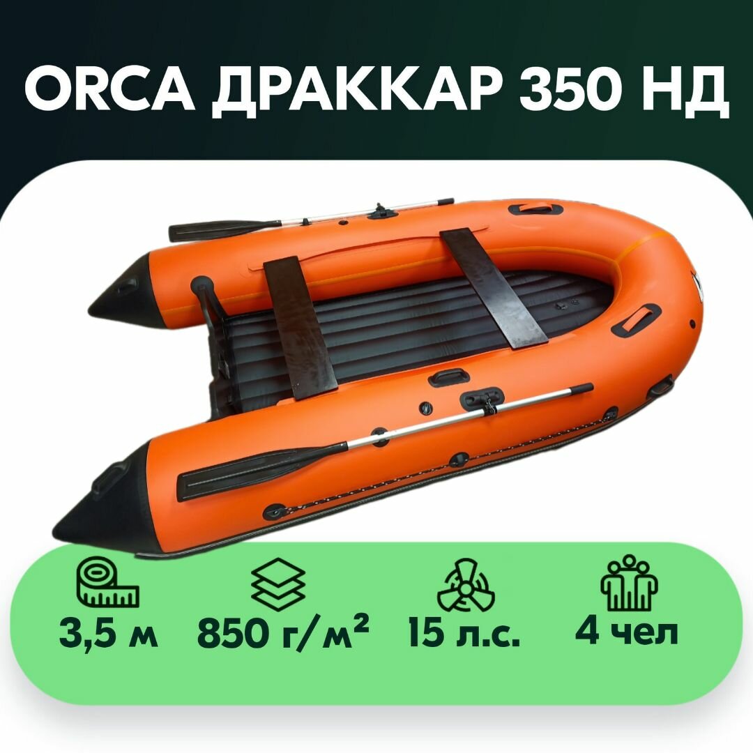 10 цен на Лодка ПВХ "Drakkar"350 НД. армированный ПВХ, 350 см, грузоподъемность 600 кг, 4 места