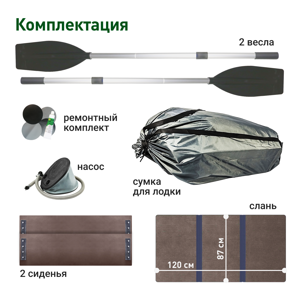 Лодка надувная ПВХ для рыбалки гребная двухместная OZERUS 280, крепления под транец для мотора, зеленая 23 000 ₽