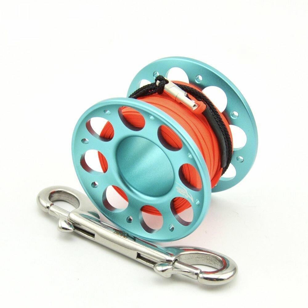 Катушка-шпуля алюминиевая 15м с карабином голубой информация: