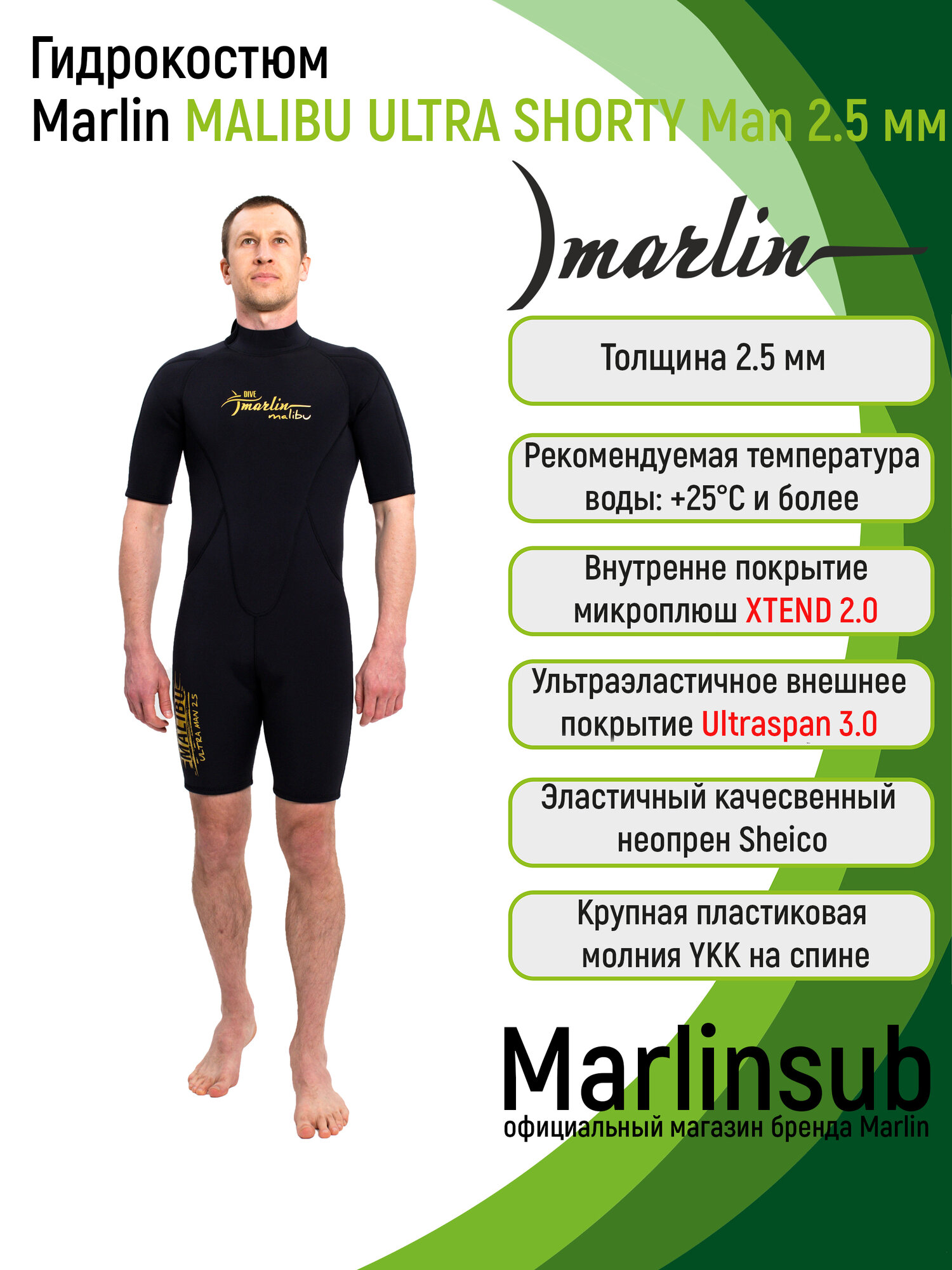 Отзывы на Летний гидрокостюм для плавания Marlin MALIBU ULTRA SHORTY MAN 2,5 мм S, черный/золотой