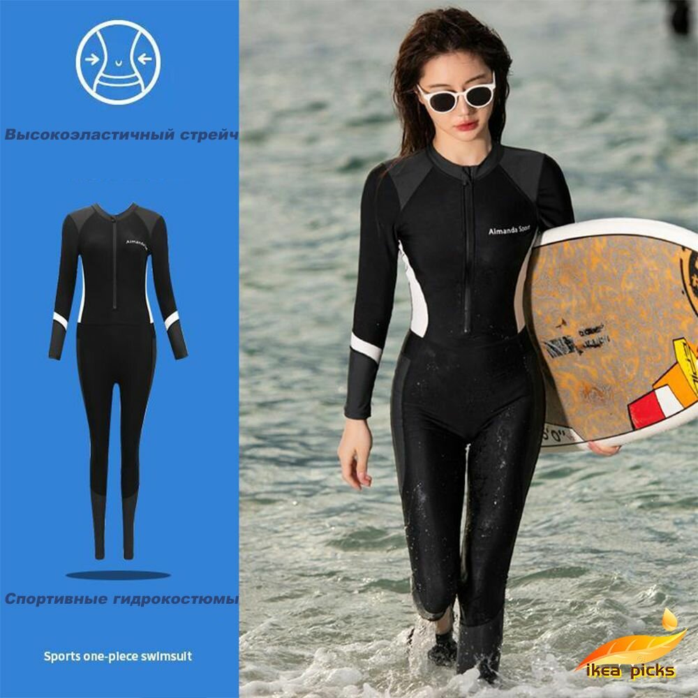 Цельный купальник с длинными рукавами, женский солнцезащитный быстросохнущий гидрокостюм для похудения