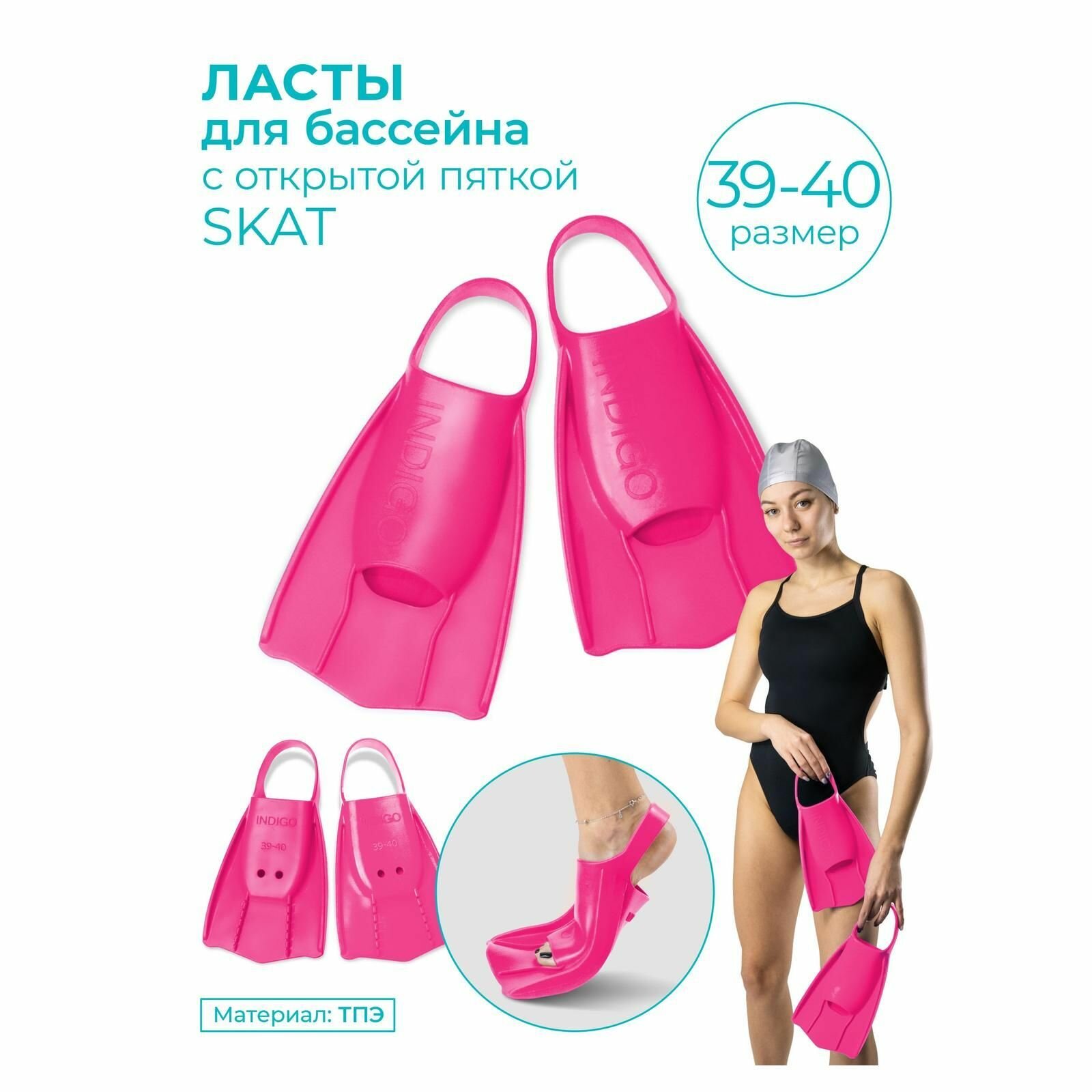 Ласты для бассейна, плавания, дайвинга короткие с открытой пяткой INDIGO SKAT 39-40 Розовый информация:
