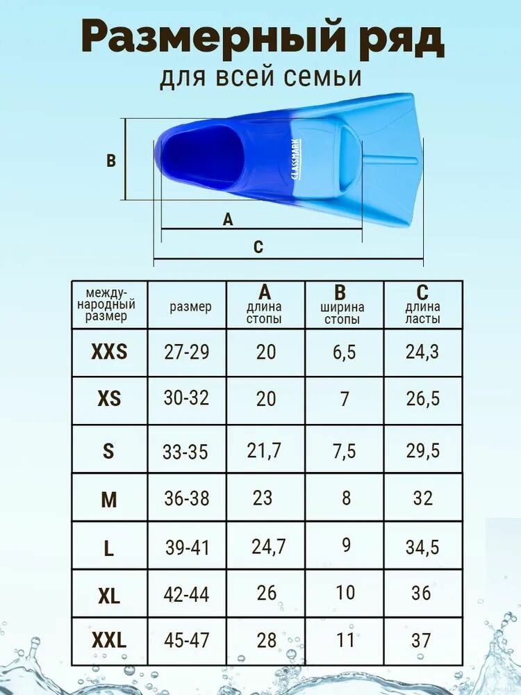 Ласты укороченные, силиконовые, размер S (33-35), синий цвет