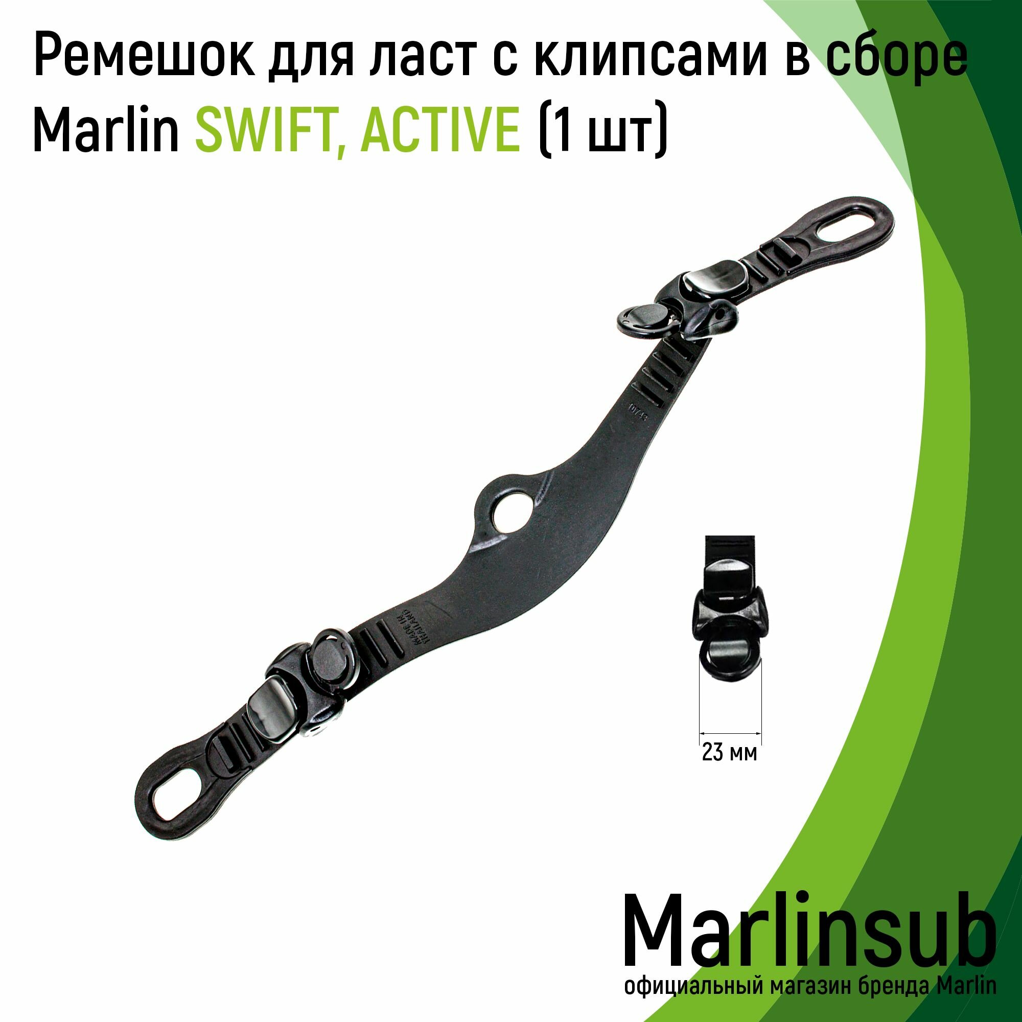 Резиновый ремешок для ласт с клипсами в сборе Marlin Swift, Active, черный информация: