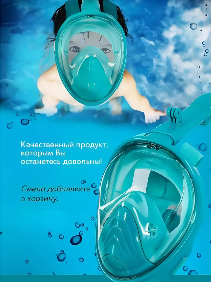 Подводная маска для снорклинга EasyBreath XS, бирюзовый информация: