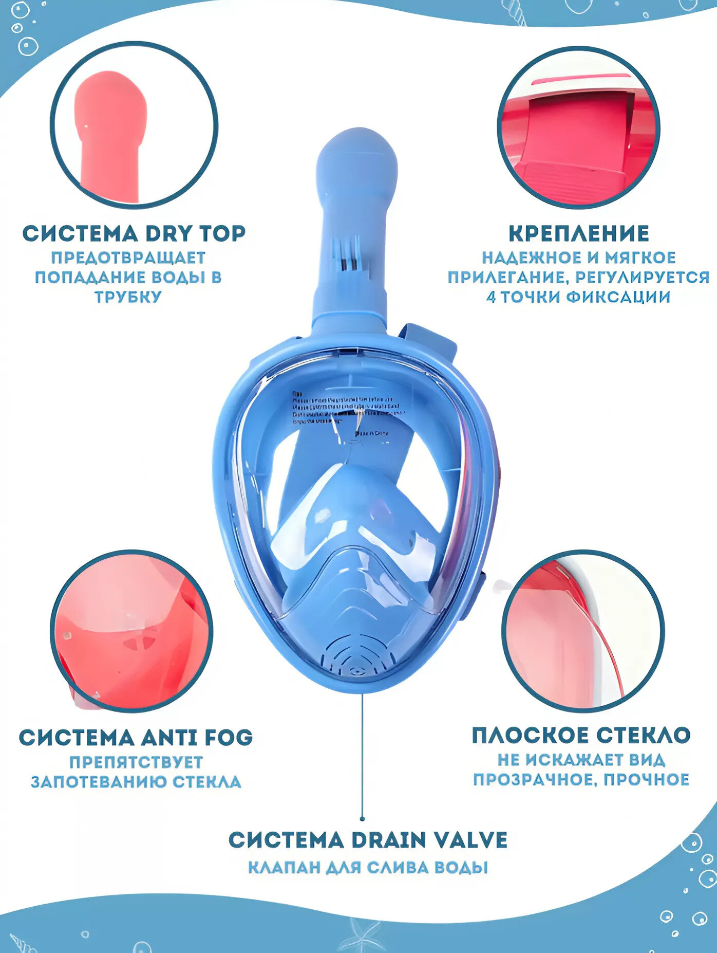 Отзывы на Полнолицевая детская маска для подводного плавания с трубкой, Маска для снорклинга с креплением для экшн-камеры, XS синий