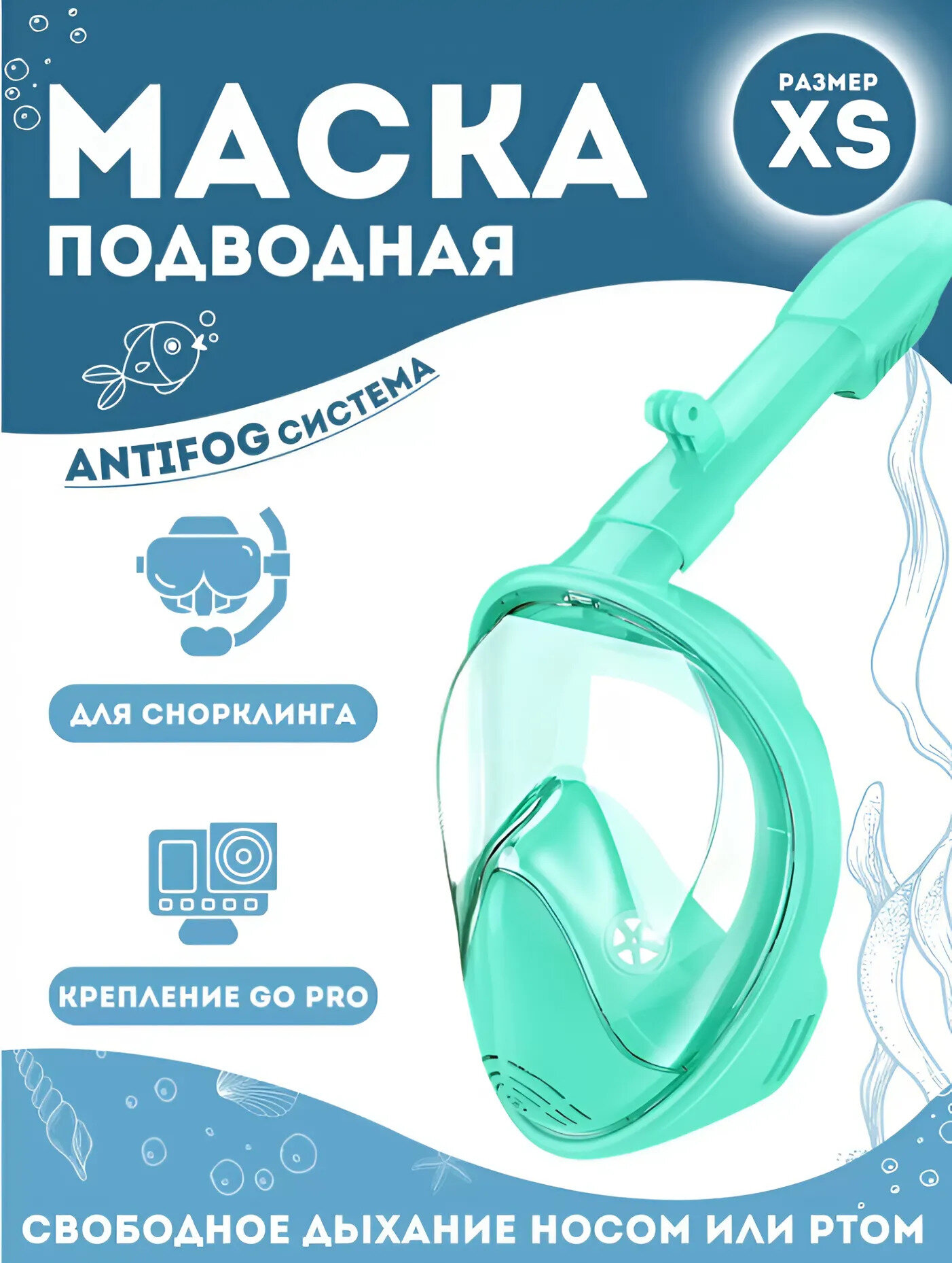 Отзывы на Полнолицевая детская маска для подводного плавания с трубкой, Маска для снорклинга с креплением для экшн-камеры, XS зеленый