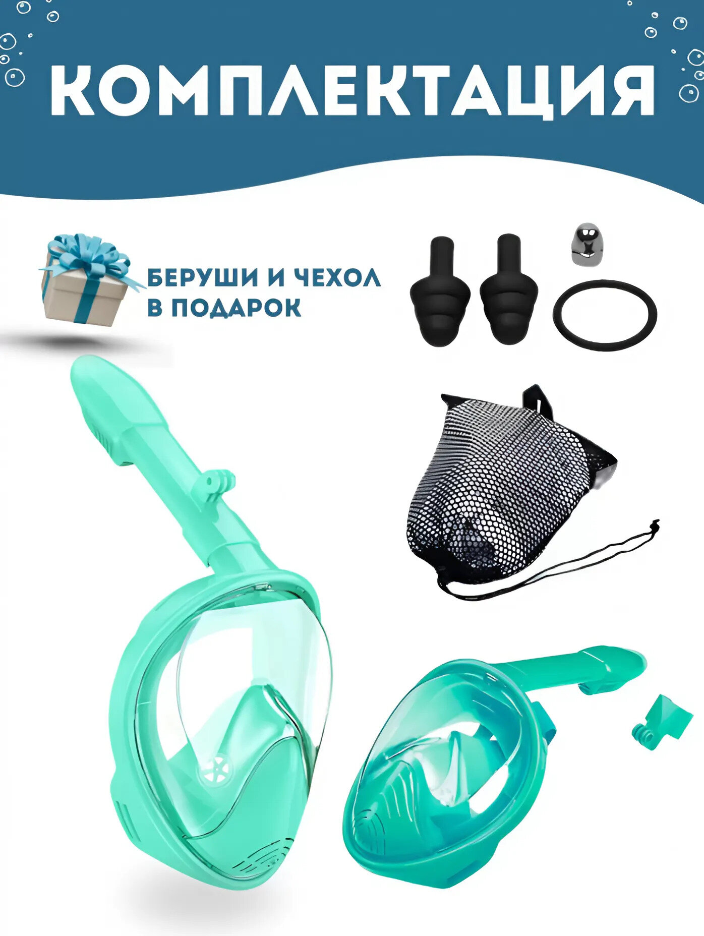 Полнолицевая маска для подводного плавания с трубкой, Маска для снорклинга с креплением для экшн-камеры, L/XL зеленый 1 190 ₽