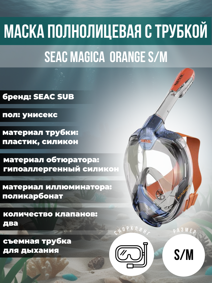 Отзывы на Маска для плавания полнолицевая SEAC SUB MAGICA BLUE/ORANGE, р-р S/M