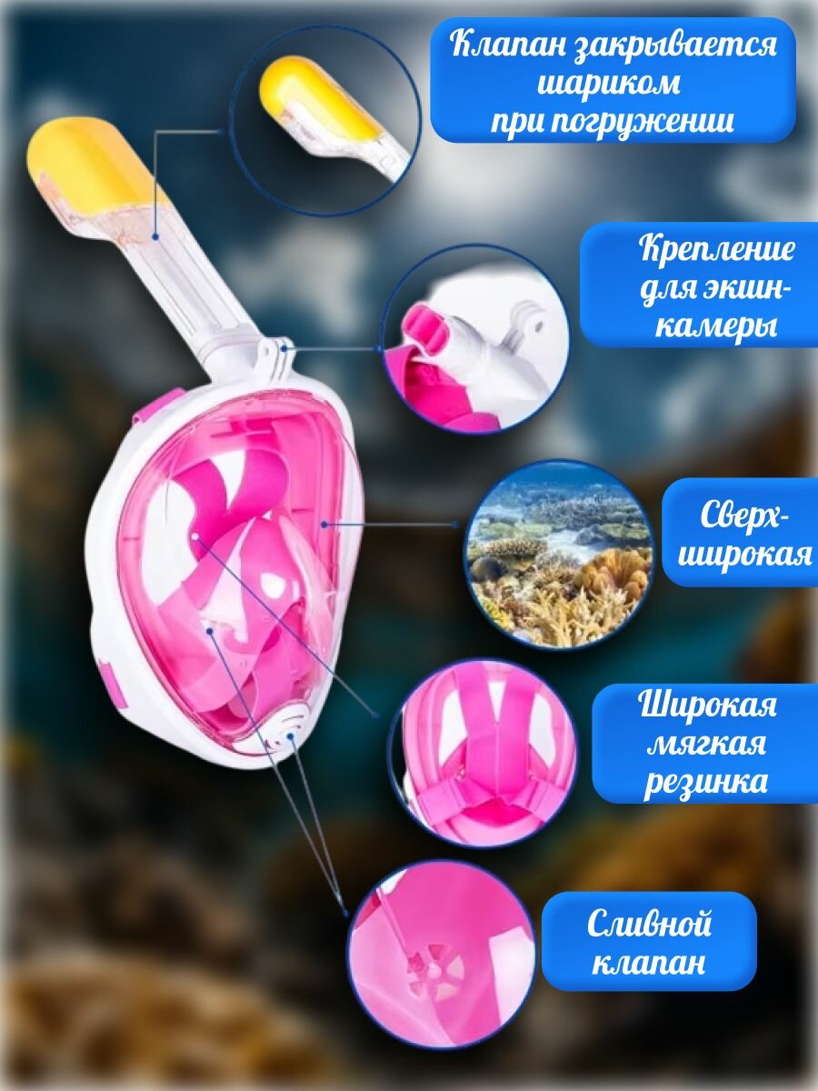 Подводная маска для снорклинга L/XL розовая информация: