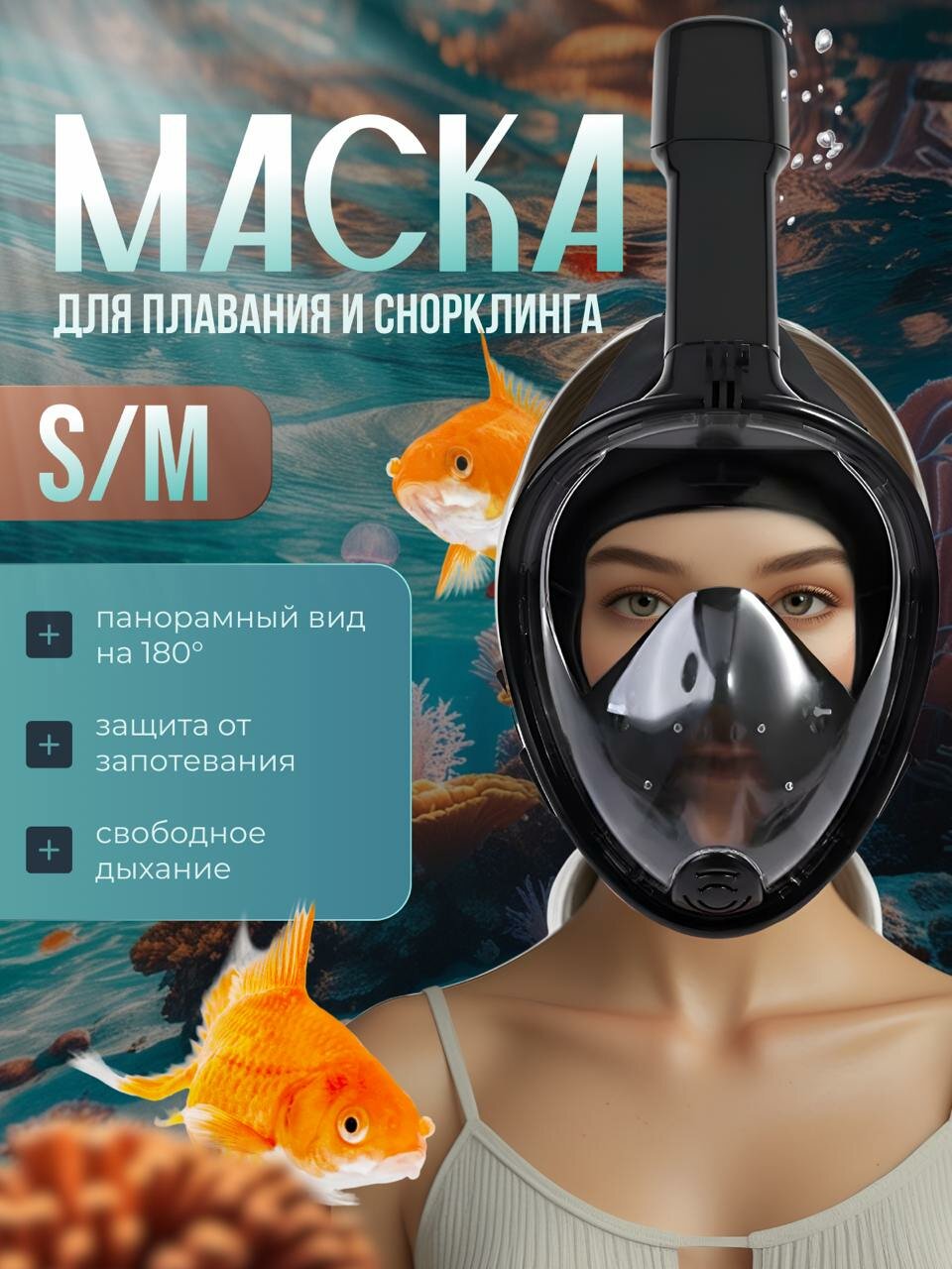 Полнолицевая подводная маска для плавания (снорклинга) s/m черная информация: