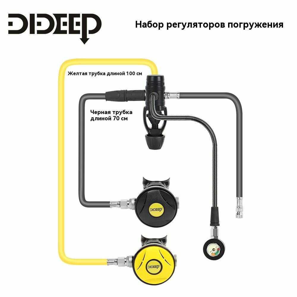 Полный комплект регулятора для дайвинга DIDEEP: Yoke-редуктор 1-й ступени, регулятор 2-й ступени, манометр и аксессуары информация: