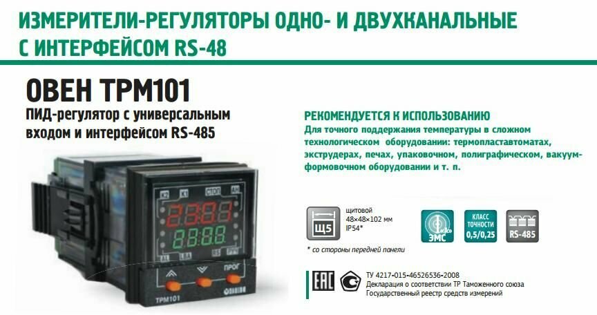 ПИД-регулятор с универсальным входом и интерфейсом RS-485 овен ТРМ101-РР информация:
