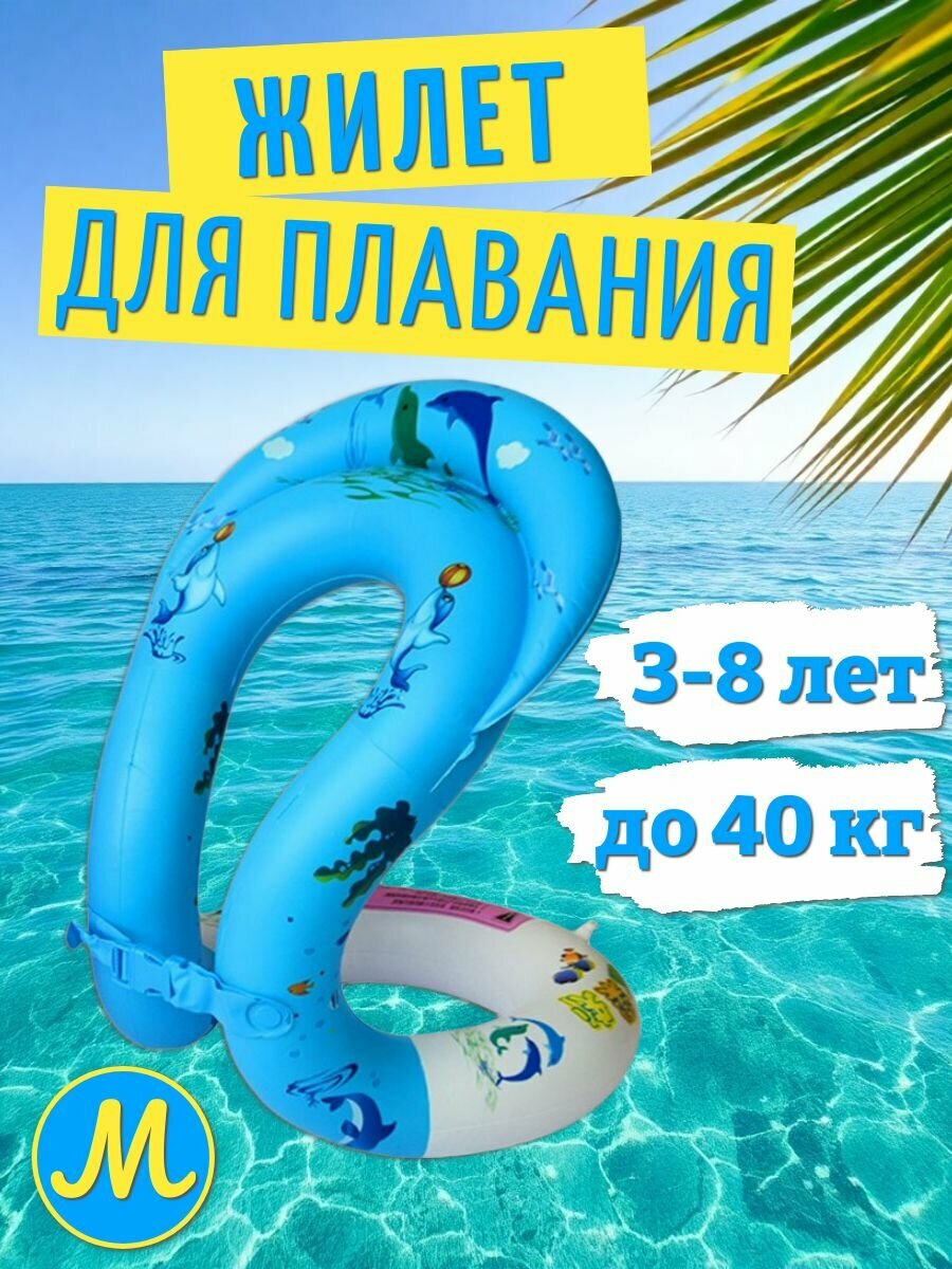 Жилет для плавания детский надувной, голубой/ Жилет "Восьмерка" размер М (3-8 лет) информация: