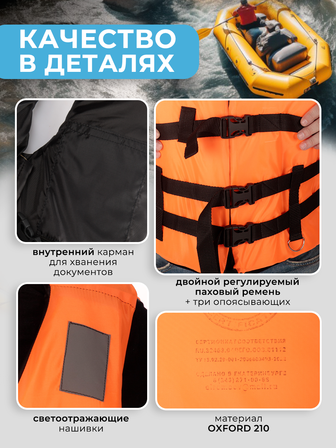 10 цен на Спасательный жилет ЕЛЬ до 100 кг. (Размер 42-50), Вес: 374 г. Цвет: Оранжевый