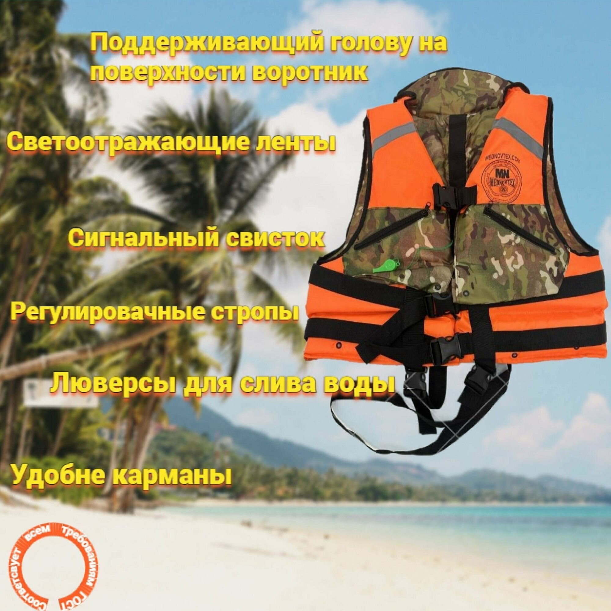 10 цен на Жилет спасательный MEDNOVTEX взрослый, двусторонний, до 120кг, оранжевый