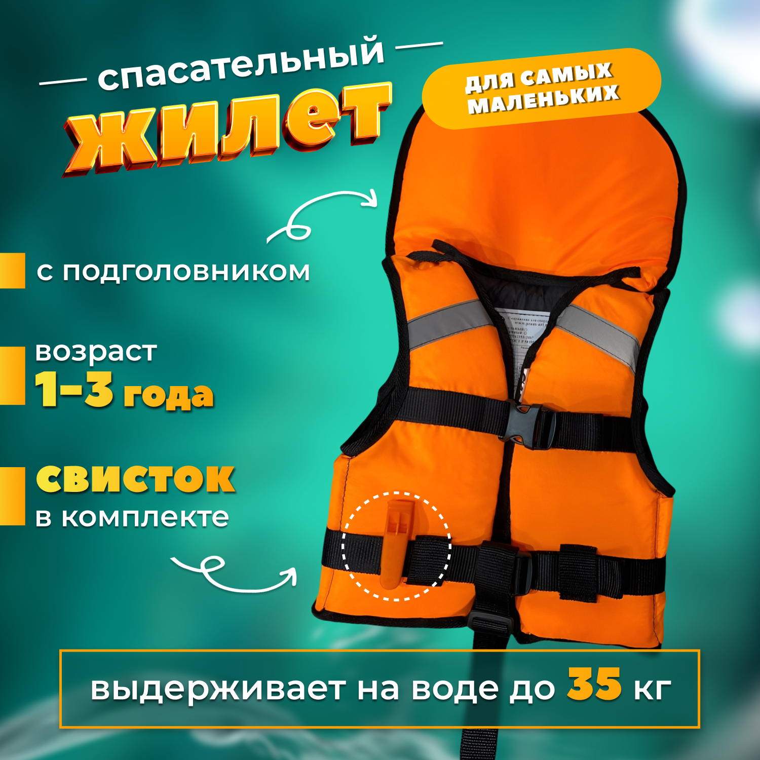 Спасательный жилет Prom-art Сертифицированный, Детский, 1-3 года, до 35кг информация: