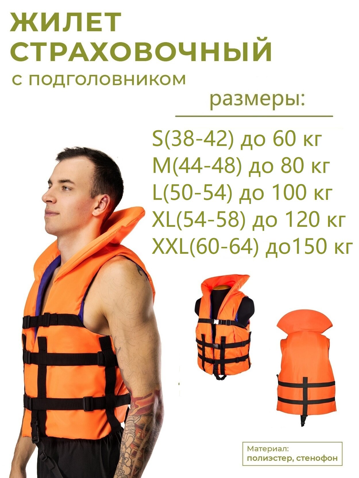 Отзывы на Спасательный жилет с подголовником взрослый, Жилет страховочный с подголовником INDIGO M (44-48) Оранжевый