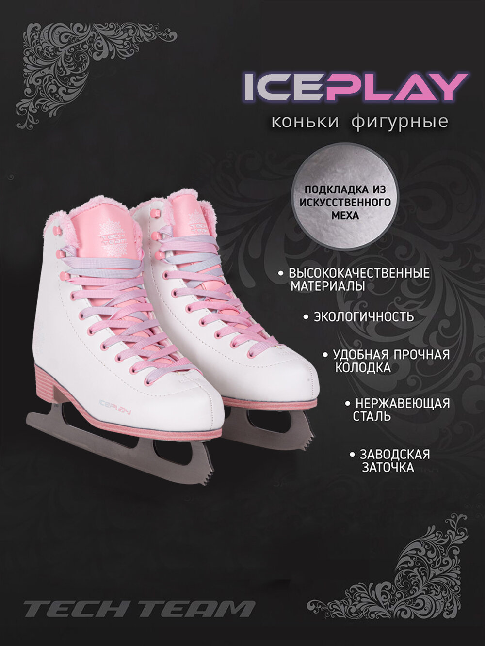 Фигурные коньки для девочек и женщин Tech Team Ice Play бело-розовые, размер 34 информация: