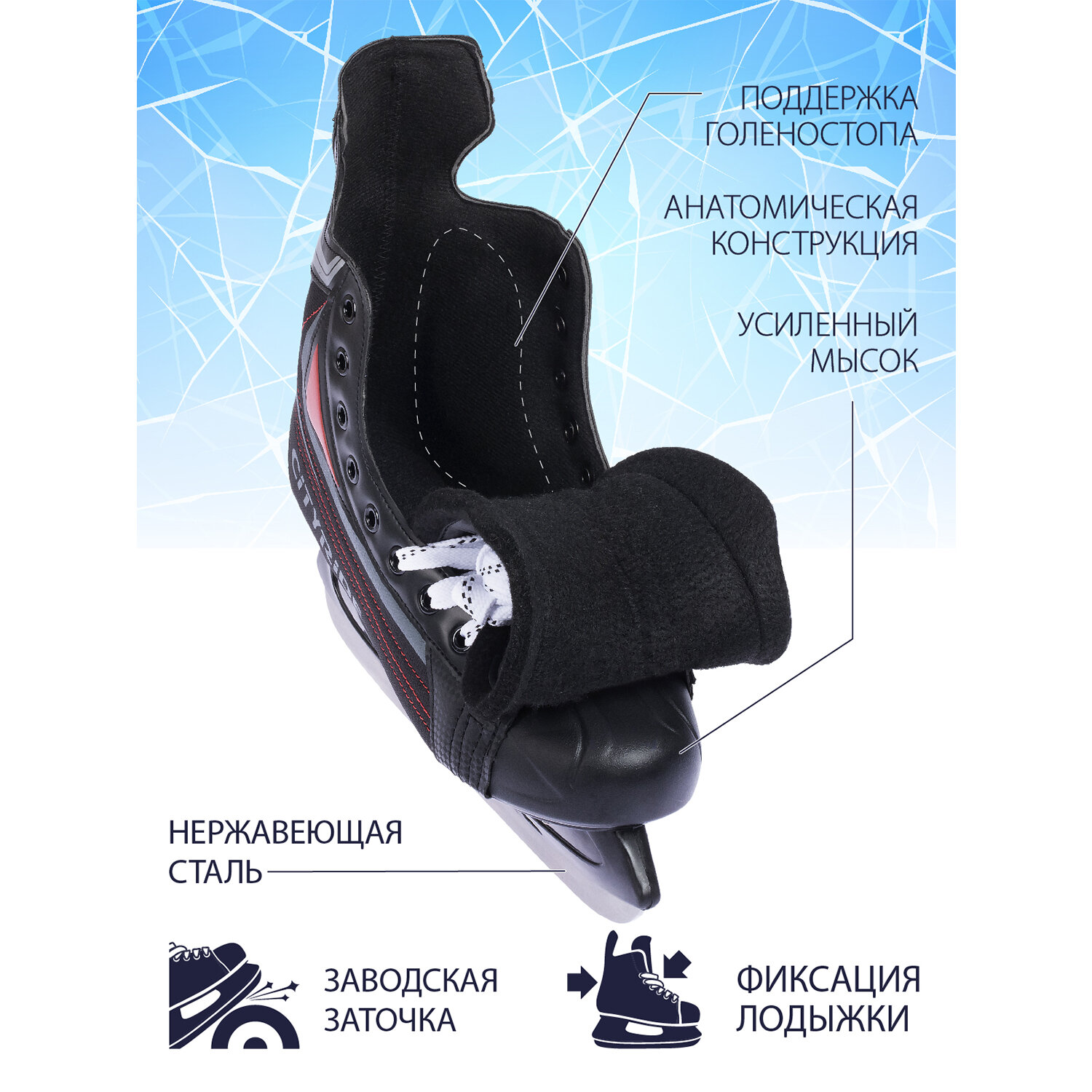 Характиристики этого товара не найдены!Отзывы на Хоккейные коньки ТМ City-Ride, лезвия нержавеющая сталь/заводская заточка, ботинки нейлон/ПВХ, чёрный/красный, 41