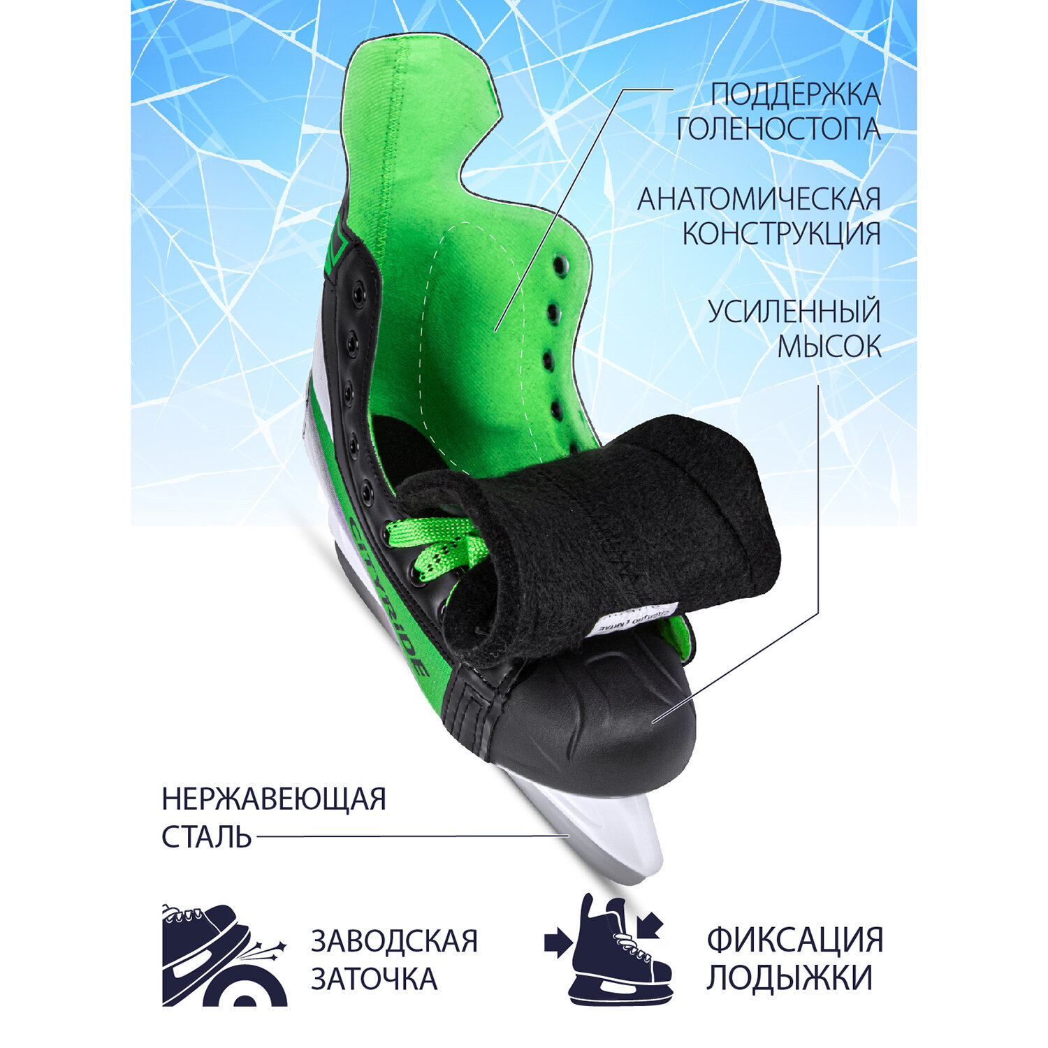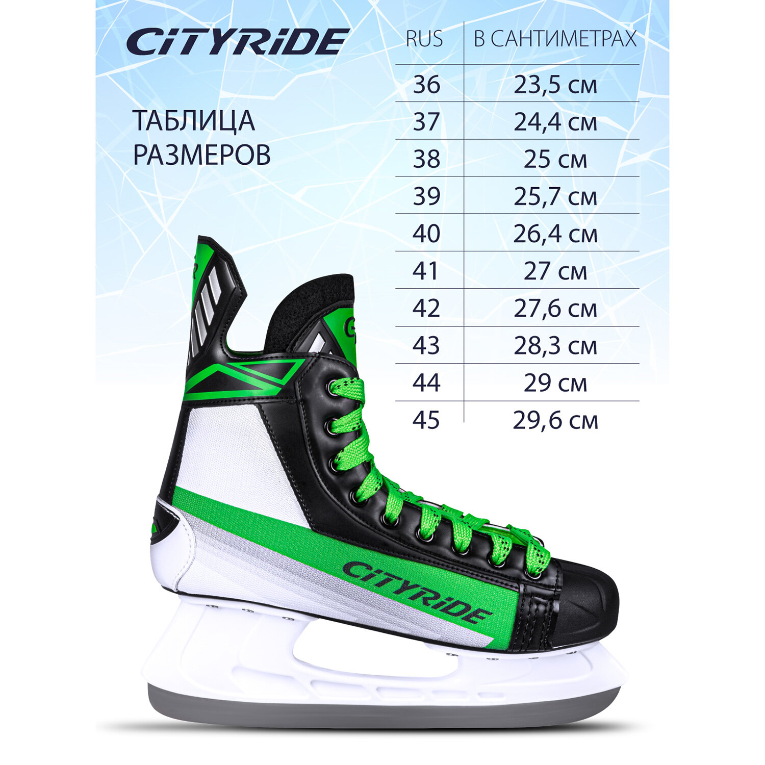 Отзывы на Хоккейные коньки ТМ City-Ride, лезвия нержавеющая сталь/заводская заточка, ботинки нейлон/ПВХ, чёрный/зеленый, 39