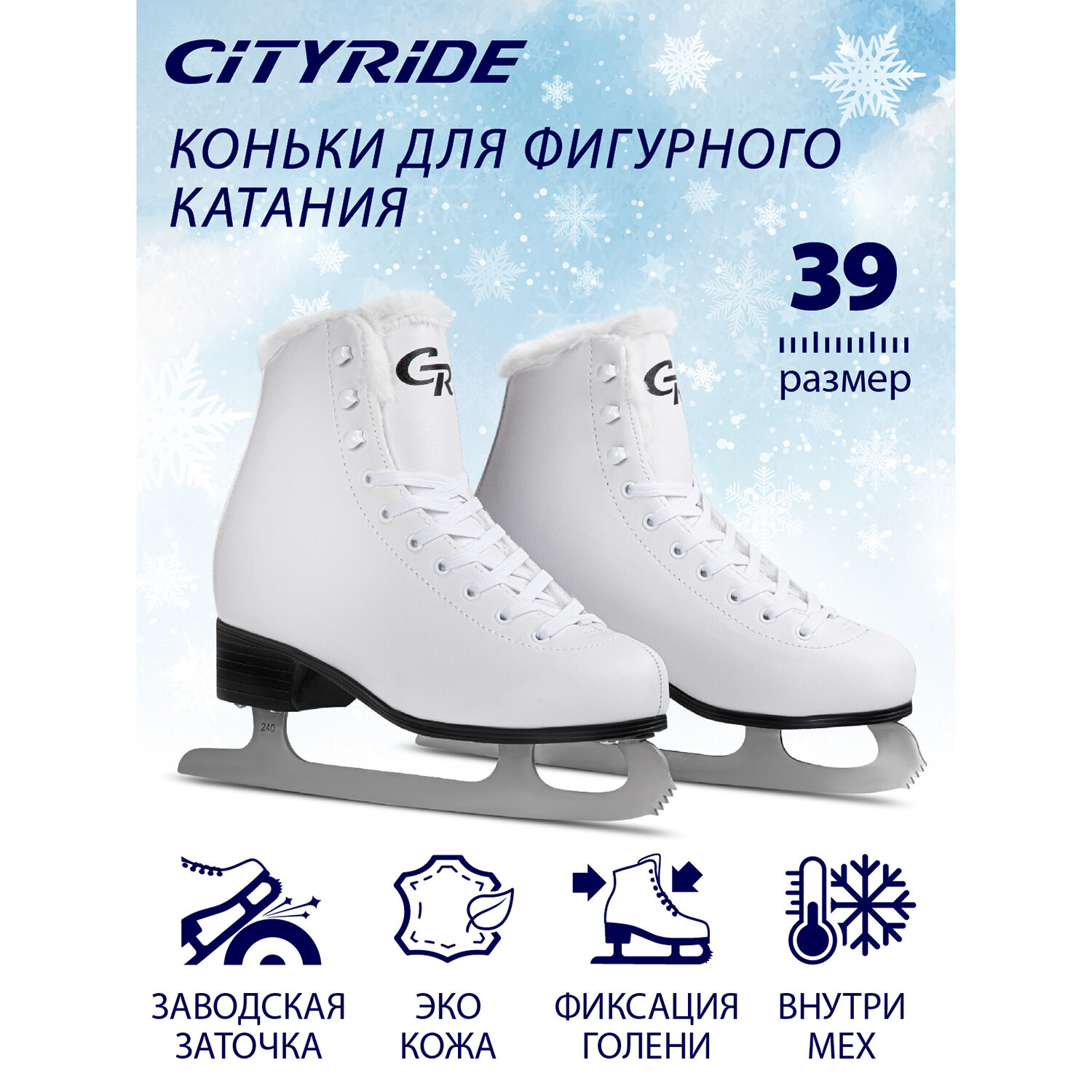 Фигурные ледовые коньки с мехом ТМ CITYRIDE, лезвия нержавеющая сталь, белый, JB9700034/39 информация:
